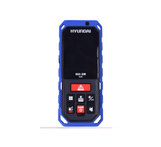 « مترلیزری هیوندای مدل 802-DM » قابلیت اندازهگیری تا دامنه 80 متر فقط با فشار دادن یک دکمه را دارد. با استفاده از متر لیزری هیوندای، دیگر نیازی به نفر دوم جهت نگه داشتن زبانه متر در انتهای قطعه کار وجود ندارد و در فواصل دور و یا با دسترسی سخت از قبیل باغات و یا زمینهای ناهموار و یا مکانهای مرتفع که نیاز به استفاده از نردبان دارند و غیره به راحتی قابل اندازه گیری است. با استفاده از متر لیزری هیوندای مدل 802DM میتوان با دقت بالا اندازه گیری نمود و فواصل اندازهگیری شده را به واحدهای متر، اینچ تبدیل نمود.