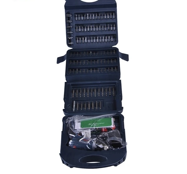 - در بستهبندی این محصول مجموعهای شامل 117 قطعه سری پیچگوشتی و بکس ساخته شده از مواد CR-V و یک فست شارژر عرضه میشود