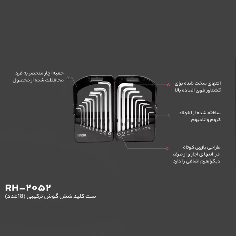 مجموعه ۱۸عددی آچار آلن ستارهای رونیکس مدل ۲۰۵۲