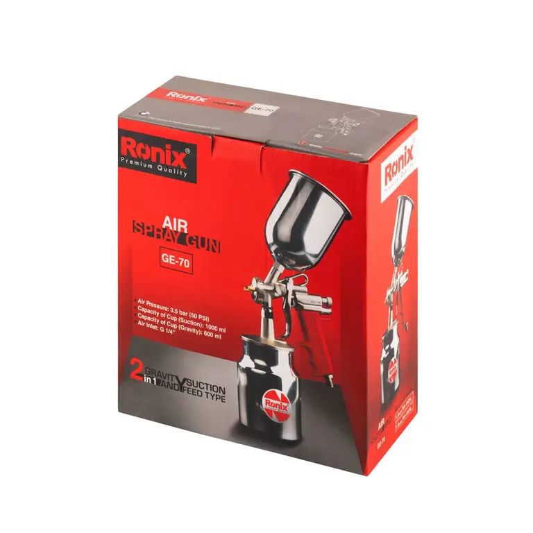 پیستوله بادی مدل RH-6426 رونیکس از آن دست ابزارآلاتی است که با استفاده از هوا، مقدار دلخواهی از رنگ یا سایر مایعات را روی سطوح مدنظر می پاشند. این ابزار که با نام پیستوله رنگ پاش نیز معروف است را می توان به عنوان یکی از بهترین گزینه ها برای انجام رنگ آمیزی یکنواخت روی سطوح مختلف به حساب آورد، زیرا در صورت تنظیم دقیق و استفاده صحیح می تواند رنگ را به صورت یکدست و یکپارچه روی سطح مورد نظر اسپری کند. این پیستوله حرفه ای از دوام و مقاومت بالا برخوردار بوده، ویژگی ای که از آن ها در برابر آسیب های احتمالی محافظت می کند.