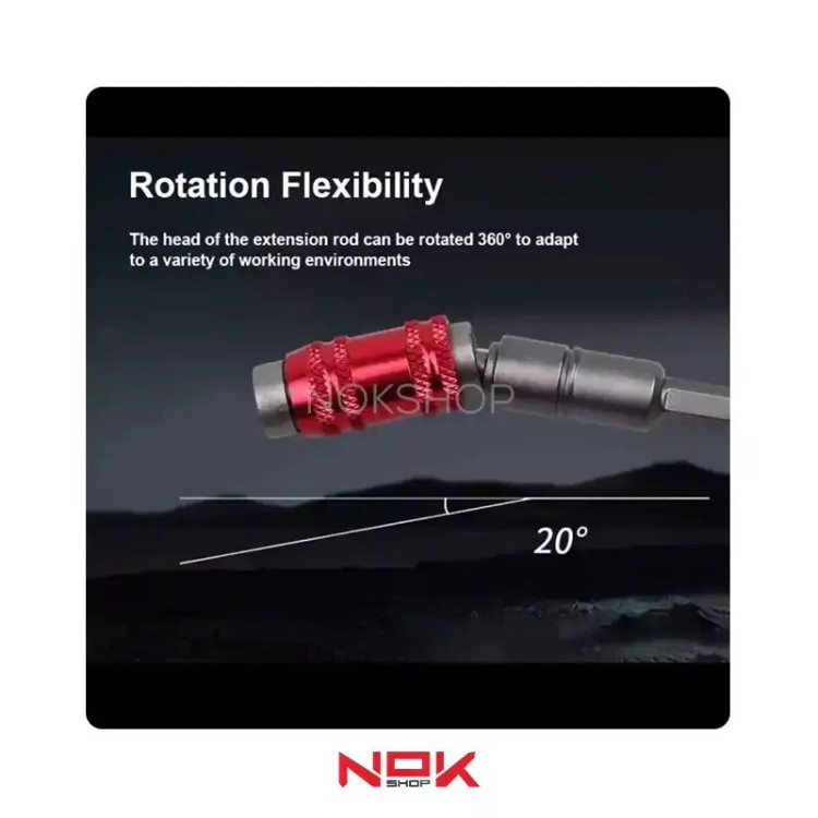 رابط لقلقه سر دریلی بیت خور مخصوص باز و بسته کردن پیچ های کنج که با دریل نمیتوان به آن دسترسی داشت. زاویه انعطاف این محصول تا 20 درجه می باشد.