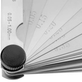 آچار فیلر RH-2698 دارای 20 تیغه با ضخامتهای مختلف است که از جنس استیل ساخته شدهاند. با این ابزار میتوانید براساس واحد متریک و اینچ، فاصلۀ بین دو سطح را اندازهگیری کنید.