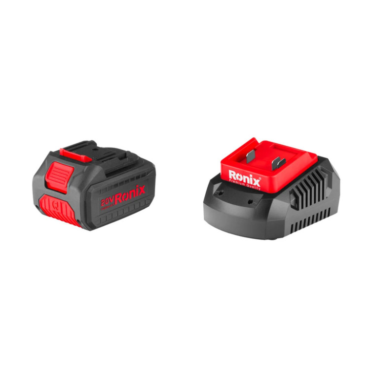 این بلوور شارژی رونیکس دارای لوله دمنده و نازلهای جداشونده است که استفاده و نگهداری از آن را راحتتر کرده است. باتری این بلوور شارژی لیتیومیونی با ولتاژ ۲۰ ولت و ظرفیت ۴۰۰۰ میلیآمپر ساعت است که با سایر ابزارآلات شارژی 20 ولت سری 86 رونیکس سازگار است.