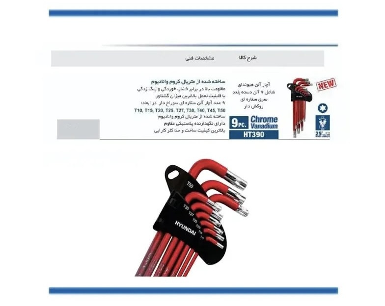 آچار آلن ستارهای هیوندای مدل ۳۹۰