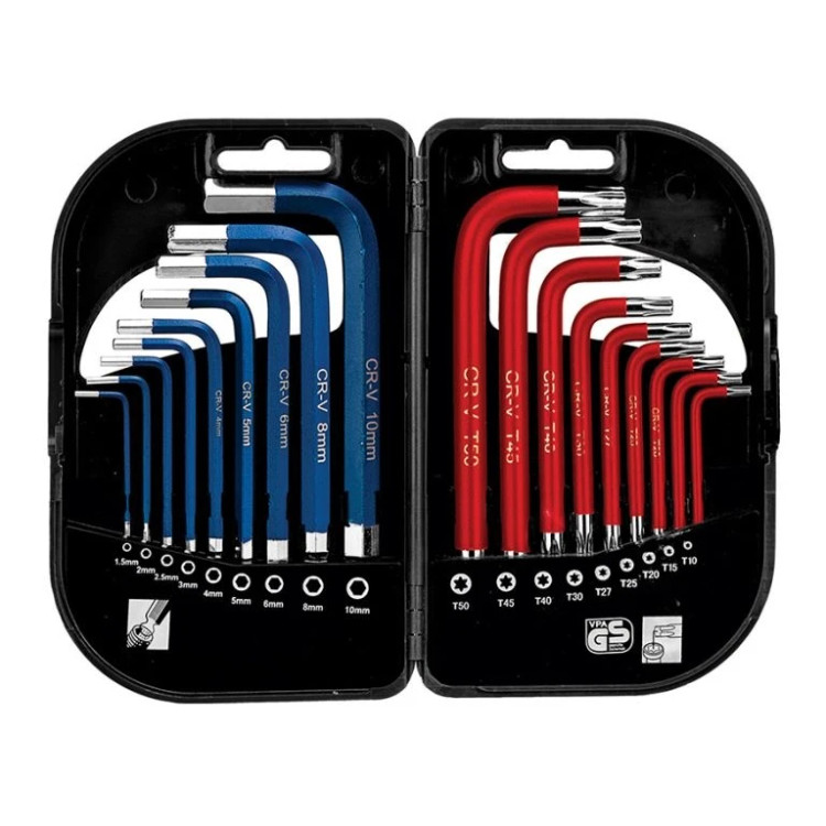 - 9 عدد آچار شش گوش ته گرد و 9 عدد آچار ستاره ای سوراخ دار