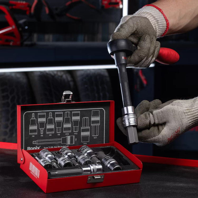 جعبه بکس مدل RH-2692 رونیکس، انتخابی کارآمد و حرفهای است. این مجموعه 9 پارچه، شامل 9 عدد آچار رابط ششگوش با طولهای مختلف و سوکتهای ½ اینچی است. با وجود تنوع سوکت و رابط، کاربران از تنوع و انعطاف بالایی در انجام فعالیتهای خود بهرهمند میشوند.