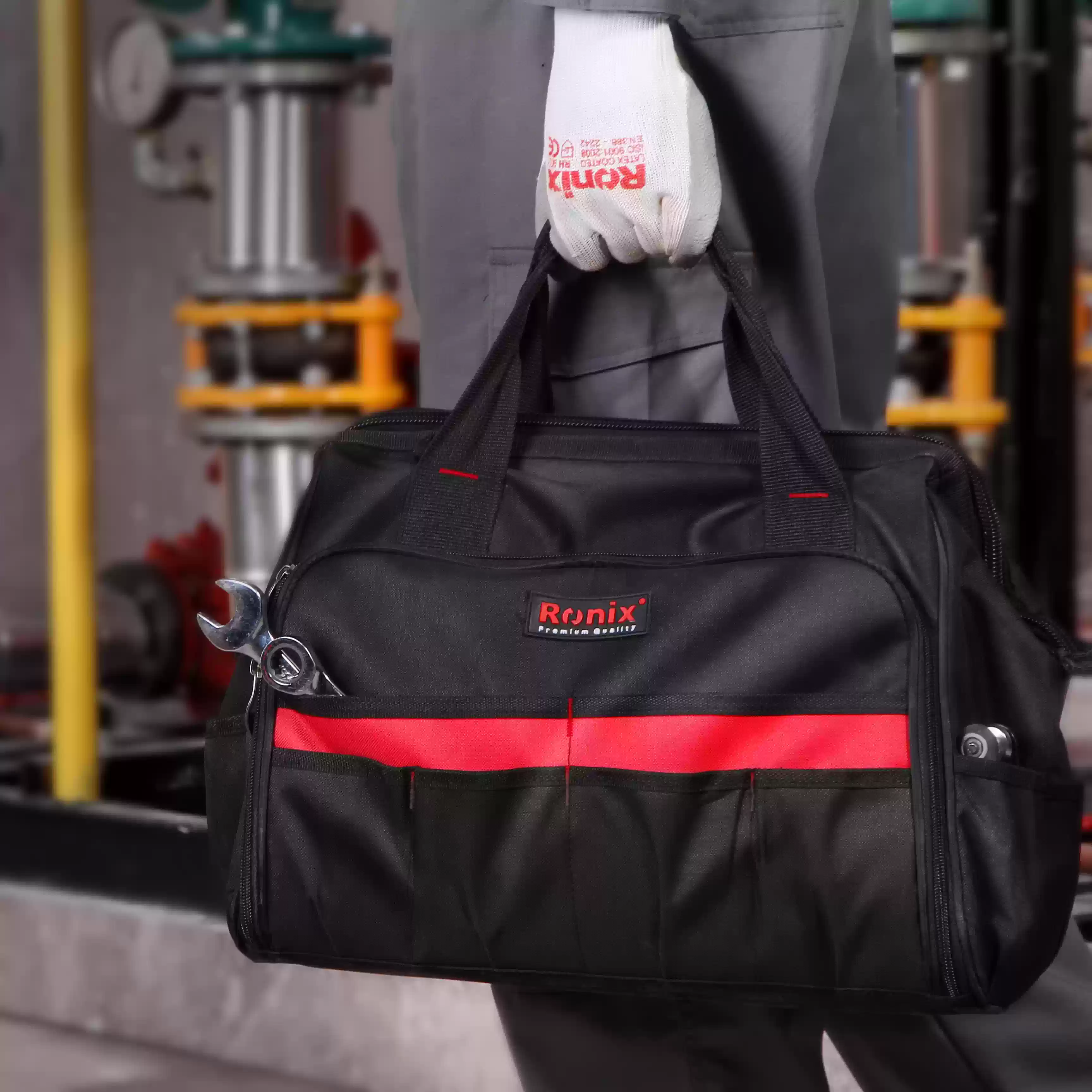 دارای 6 جیب داخلی + 18 جیب خارجی و جداکننده ی 9 عددی آچار